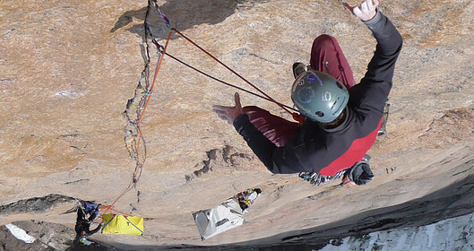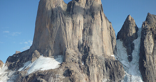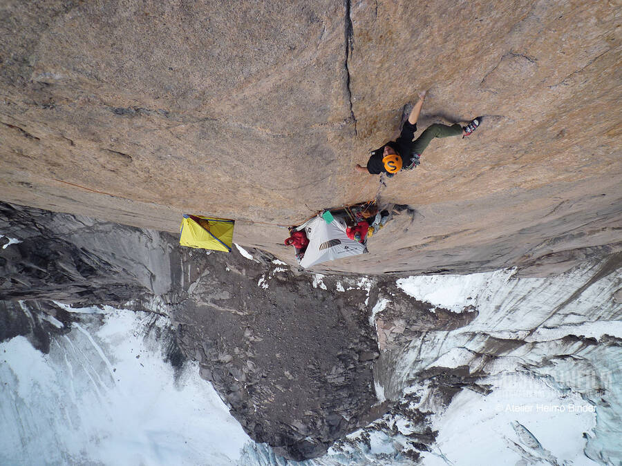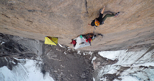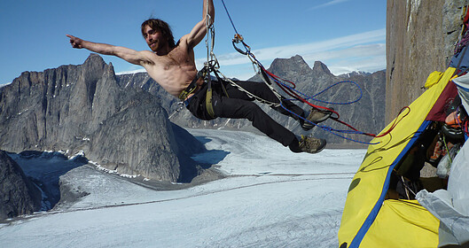 45 days, 0 nights, 600km on foot, 11 days living on a vertical wall, 4 guys, 1 girl…. Nicolas Favresse, Sean Villanueva, Olivier Favresse, Stephane Hanssens and Silvia Vidal on a rock climbing expedition on Baffin Island in the Canadian Arctic. It was a 60 km approach to Mount Asgard, of which they had to make 5 return trips to get all their gear and food to the base and back out or a total of 600 km on foot. This didn’t stop them from bringing along their musical instruments for the journey: tin whistle, mandolin, harmonica, concertina and pots and pans for percussion. They spend 11 days on the wall trying to freeclimb the North-West face of the South tower of Mount Asgard. This is very serious stuff!