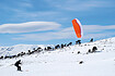Everyday, Monsieur X gets up in order to drive to his office and let his monotone everyday life just happen. On his way he meets Sébastian and Morgan, who prepare for their journey to South America. Thanks to the visions of Monsieur X who would like to set off too, we participate in the adventures of the two Frenchmen on the Chilean volcanoes. With their skis and kites they playfully discover an impressive landscape and the enormous strength of the wind.